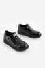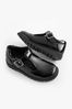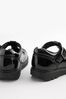 Czarny lakierowany - Skórzane buty szkolne na grubej podeszwie z paskiem w kształcie litery T