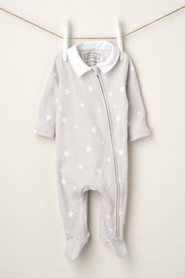 Truly w kolorze szarym - Star Babygrow With Collar