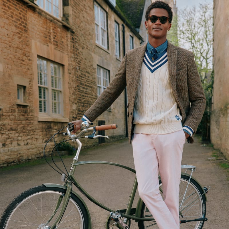 Połącz formalny garnitur z wyrazistą dzianiną, aby uzyskać idealny sezonowy strój Przeglądaj odzież z dzianiny.
