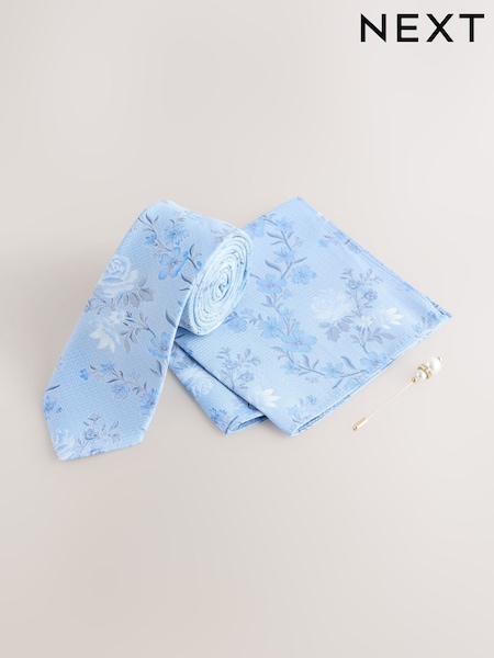 Niebieski - Tie and Lapel Pin Set