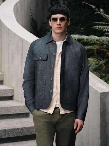 Niebieski - Smart Zip Through Jacket with Linen